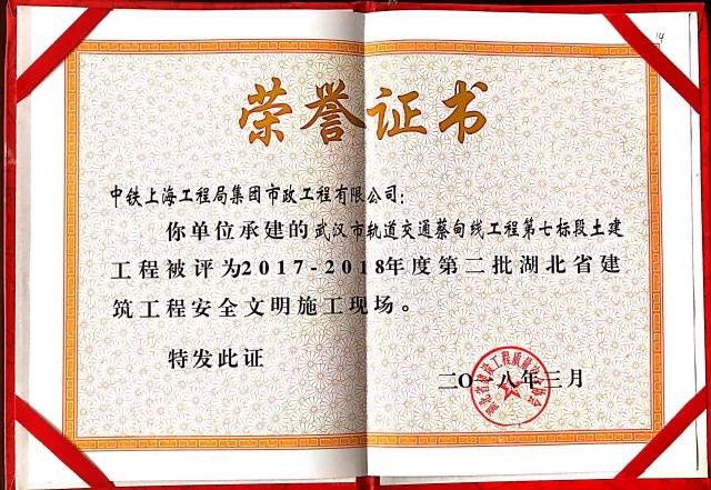 日前,從湖北省建設工程質量安全協會傳來喜訊,中鐵上海工程局集團市政公司承建的武漢市軌道交通蔡甸線工程第七標段土建工程榮獲“湖北省建筑工程安全文明施工現場”榮譽稱號...