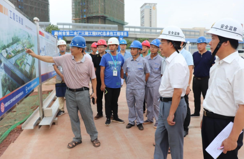 9月9日下午,贛州經(jīng)濟(jì)技術(shù)開發(fā)區(qū)管委會主任陳水連到公司承建的贛州第二水廠三期工程項(xiàng)目檢查指導(dǎo)工作,贛州經(jīng)開區(qū)住建局局長翁毅軍、水務(wù)集團(tuán)副總經(jīng)理陳俊陪同。陳水連深入施工現(xiàn)場,聽取了項(xiàng)目工程概況、施工推進(jìn)情況以及安全質(zhì)量管控等詳細(xì)匯報,重點(diǎn)查看了水廠的整體布局,以及水廠與客家大道交叉段控制性結(jié)構(gòu)聯(lián)絡(luò)通道的施工進(jìn)度。陳水連強(qiáng)調(diào)安全責(zé)任大于天,在施工過程中,項(xiàng)目部要嚴(yán)格落實(shí)安全管控措施,確保施工安全,樹立良好的央企形象。同時要做到科學(xué)組織、務(wù)實(shí)求精、達(dá)標(biāo)創(chuàng)優(yōu),確保水廠建設(shè)按期完成。