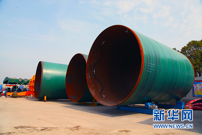 圖為黃浦江上游水源地連通管工程C5標(biāo)段項目部場地內(nèi)置放的鋼管。